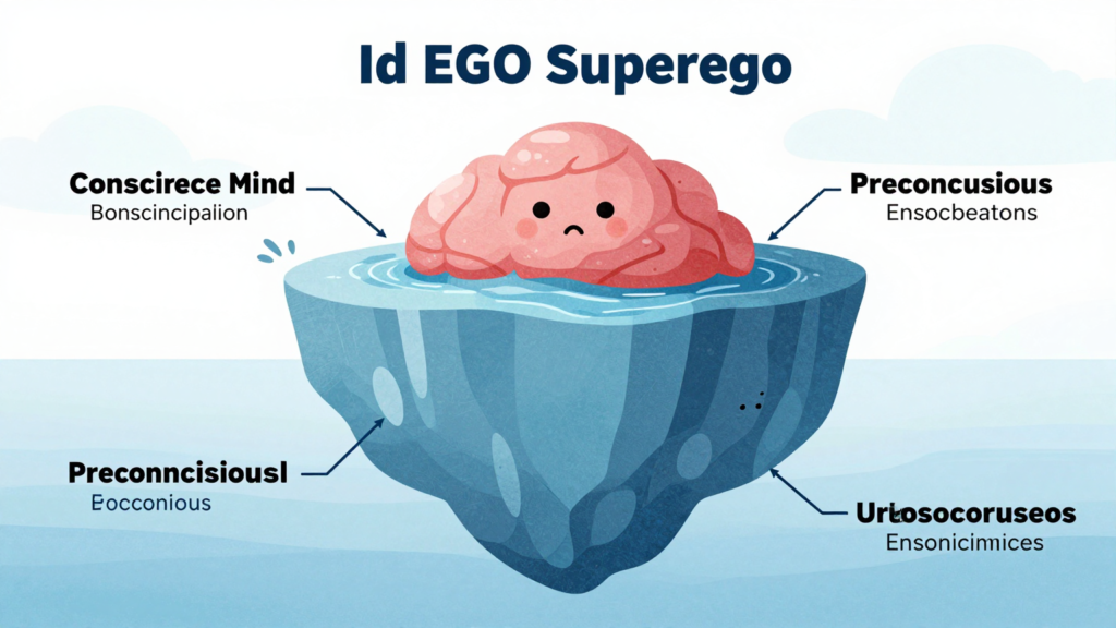 The id (from the Latin es, meaning “it”) represents the most primitive layer of the psyche. Present from birth, the id operates on the pleasure principle—seeked immediate gratification of instinctual drives without consideration of reality, morality, or the needs of others. Freud described the id as a “cauldron of seething excitations” driven by two fundamental forces: the life instincts (Eros), which include sexual and self-preservation drives, and the death instincts (Thanatos), which encompass aggression and destruction.